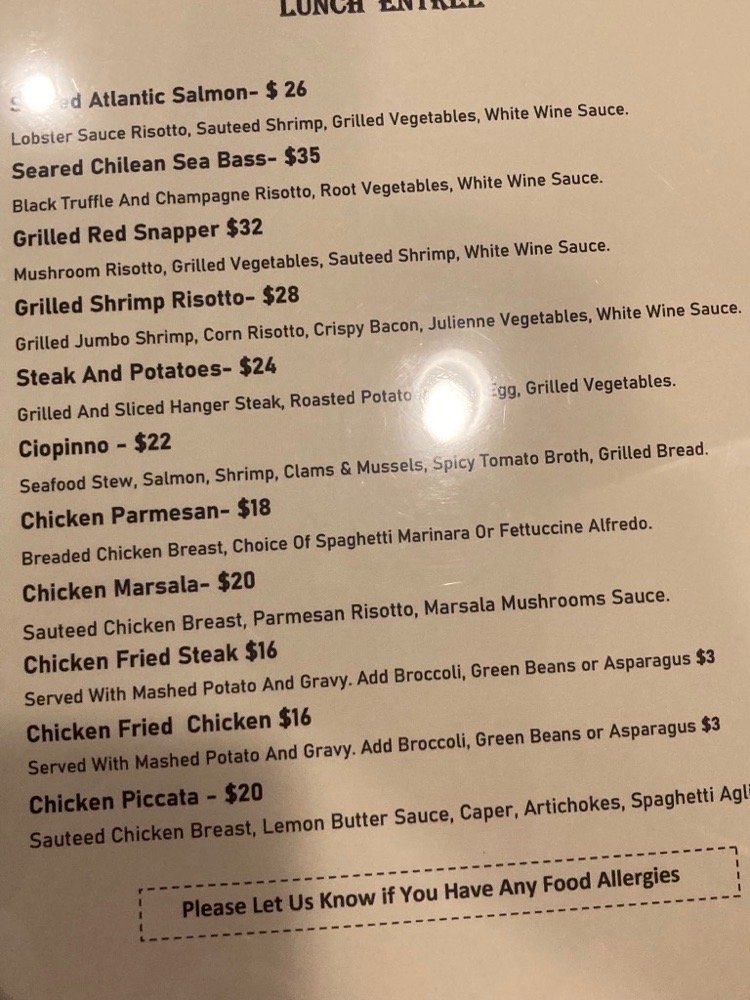 Sauteed chicken breast, lemon butter sauce, capers, artichokes, spaghetti aglio e oilio.